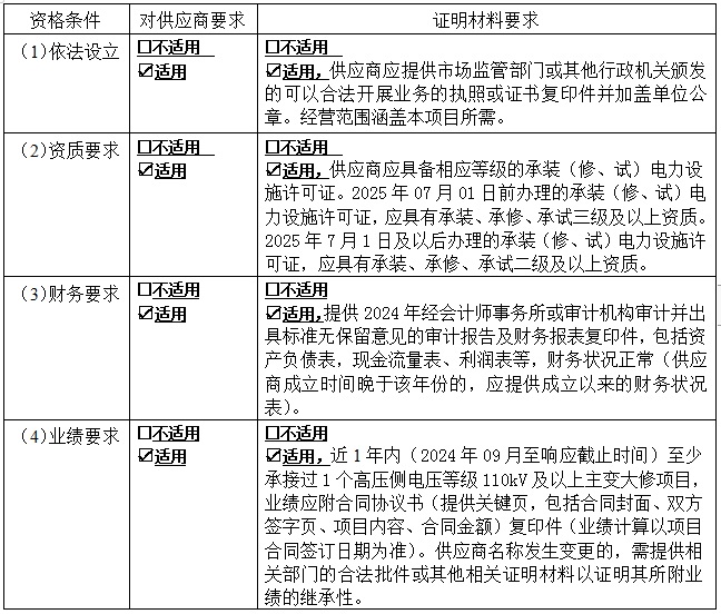 3 供应商资格要求